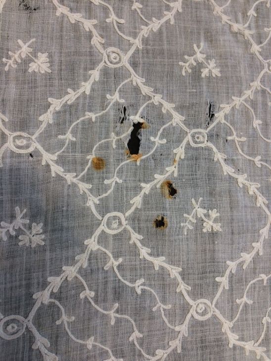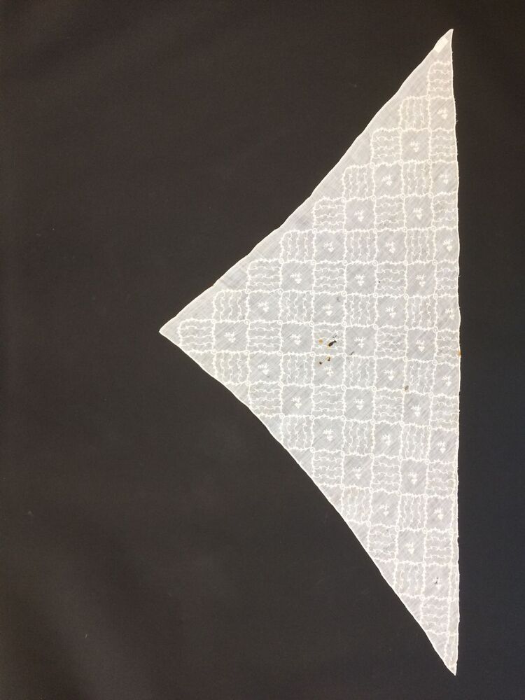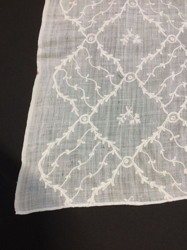 Witte fichu met getamboereerde diagonale ruiten met florale motieven