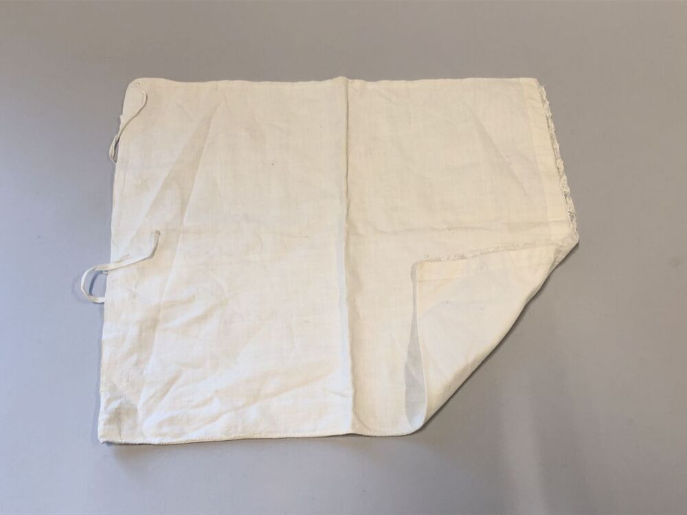 Sloopje voor wieg van wit katoen, afgewerkt met kloskant.