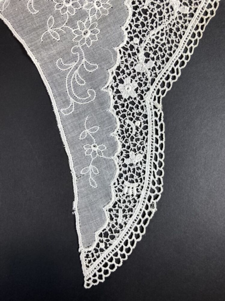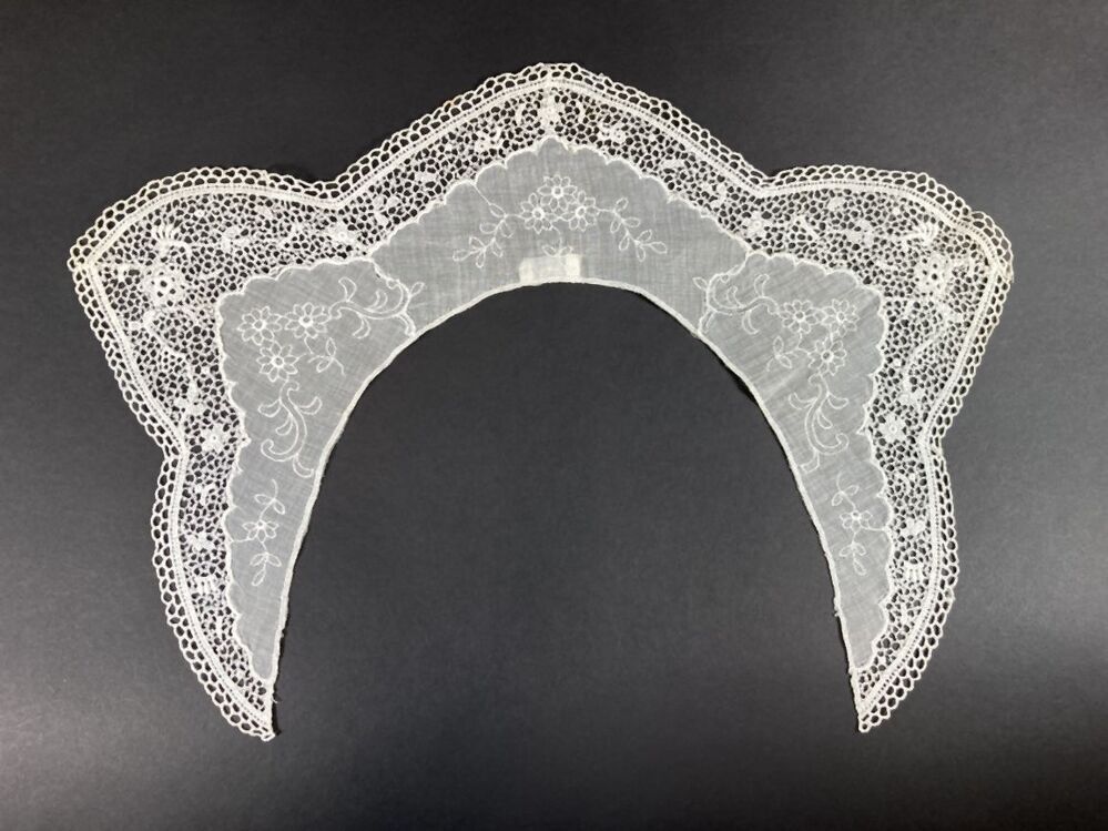 Kraagje van wit neteldoek met machinaal kloskant rand, onderdeel van groep van drie