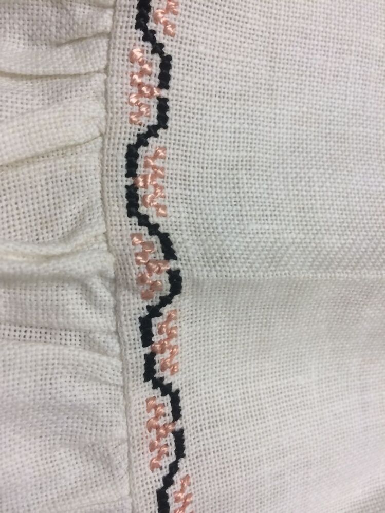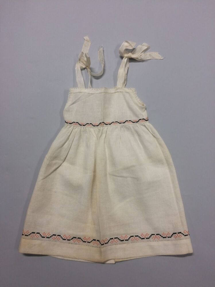 Jurkje of overgooiertje voor baby van wit losgeweven katoen met kruissteekborduursel