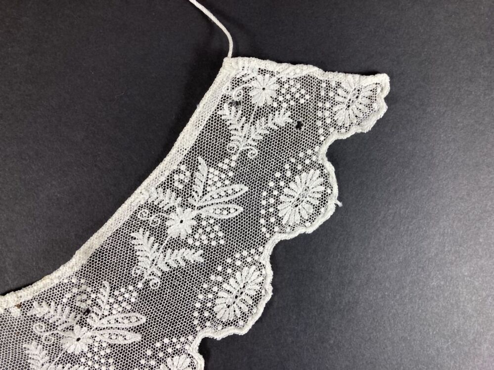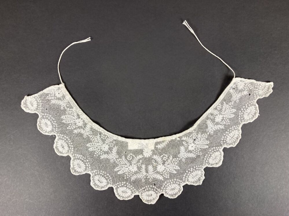 Rond smal kraagje van getamboereerde witte tule