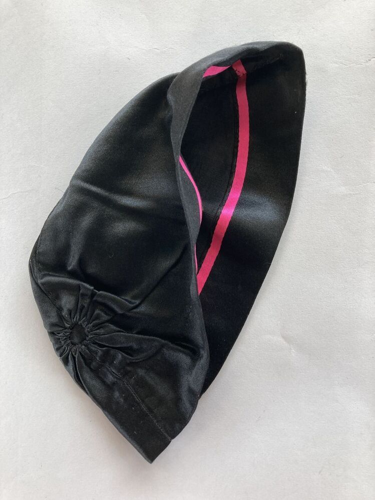 Ondermuts van zwarte atlassatijn, gedragen bij smal oorijzer