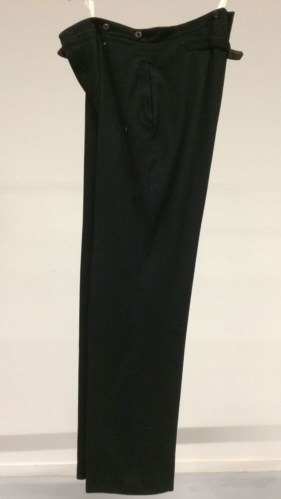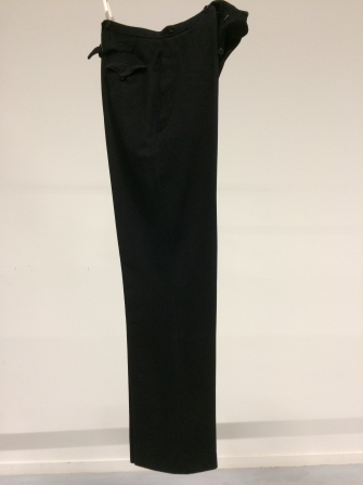 Zwarte lange broek van laken met vrij smalle pijpen en gulpsluiting, maakt onderdeel uit van bodekostuum