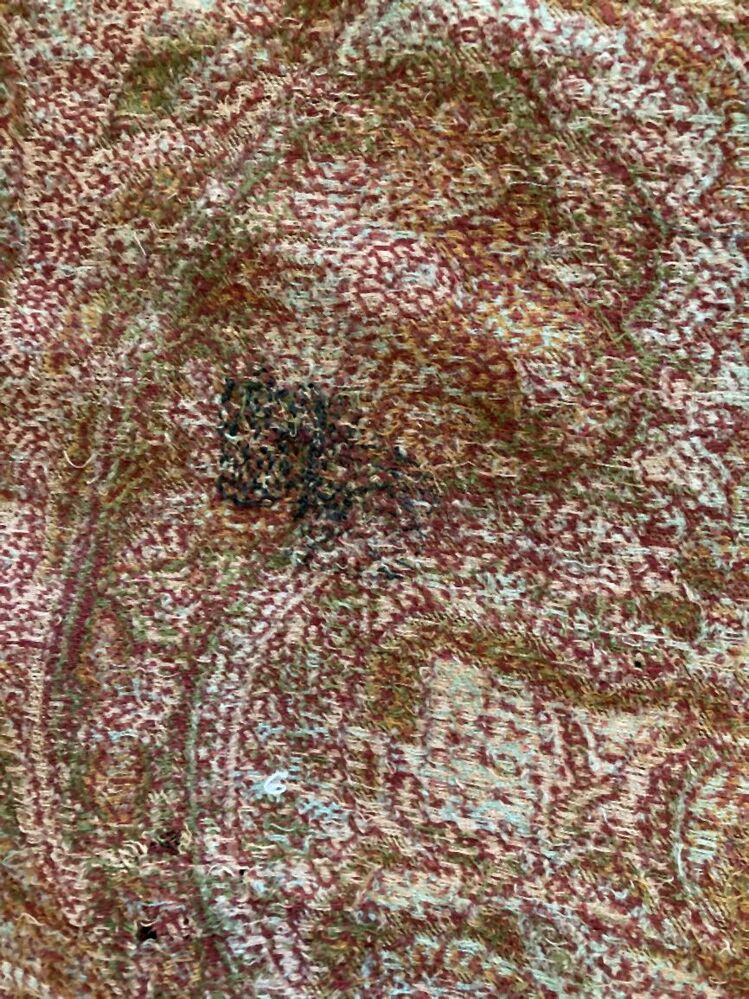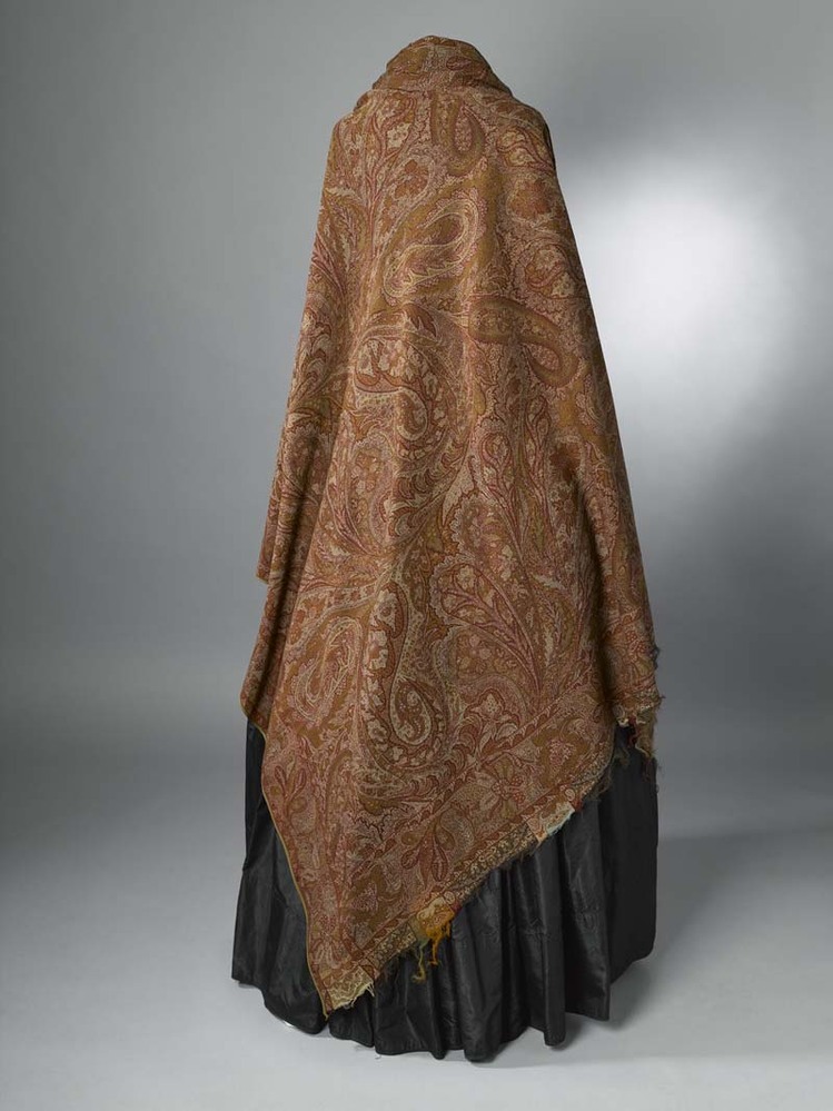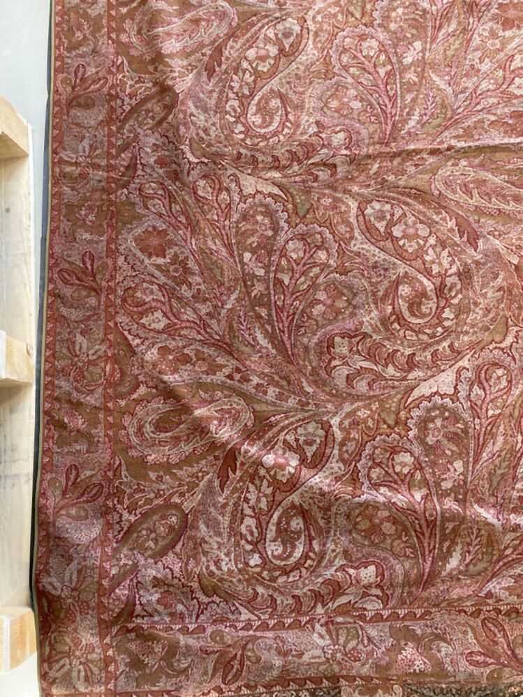Omslagdoek van wol met kasjmierweefsel, floraal patroon van gekrulde bladeren