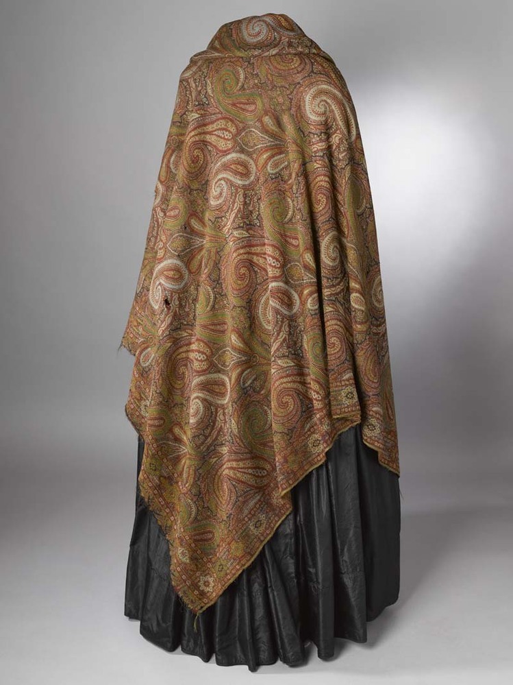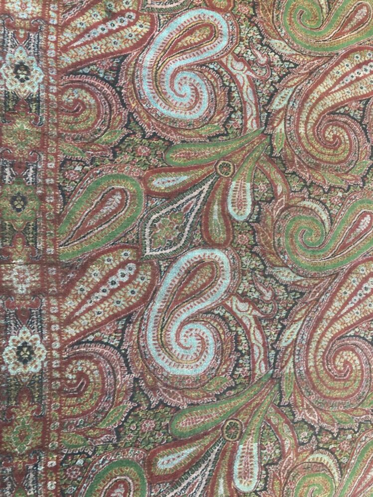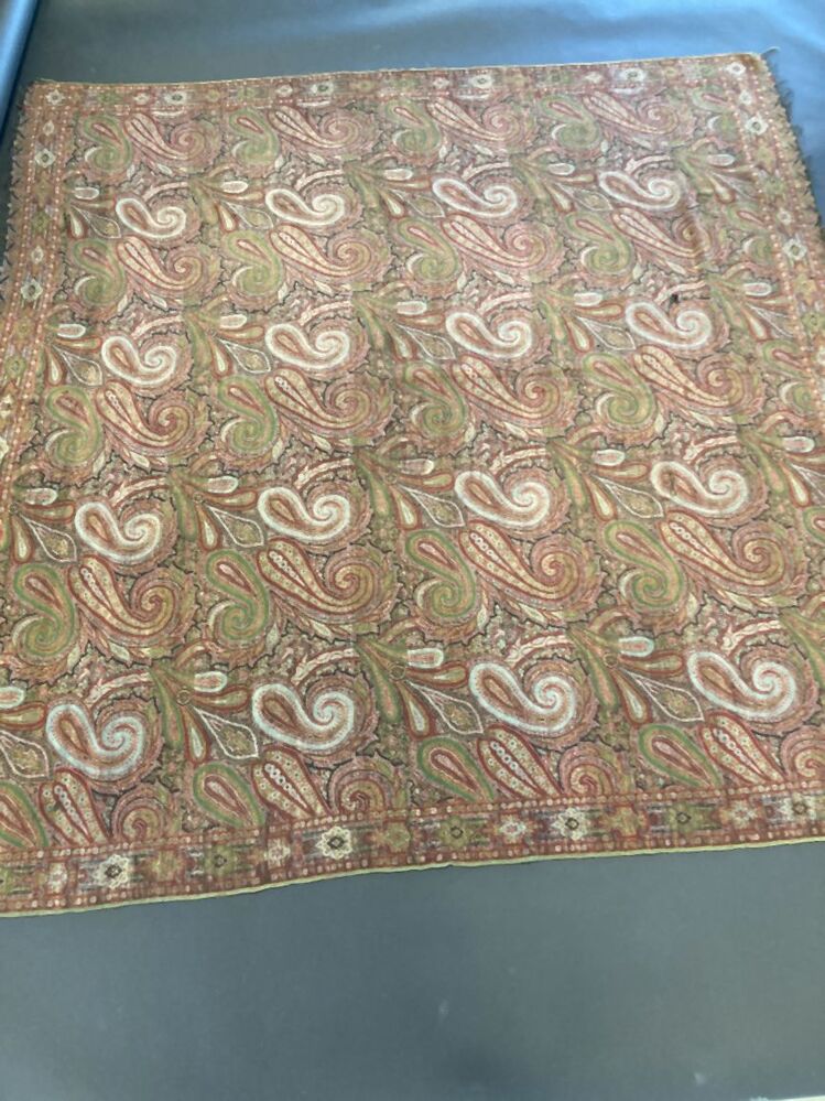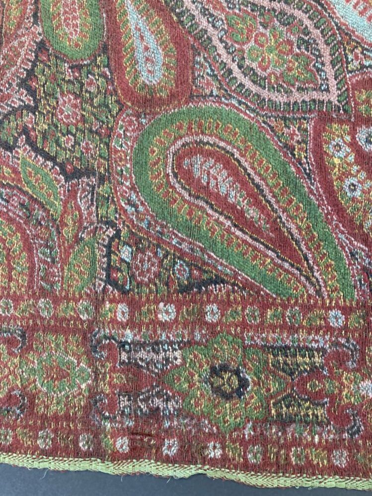 Slingerdoek van wol met kasjmierpatroon, bezaaid met gekrulde buta-motieven