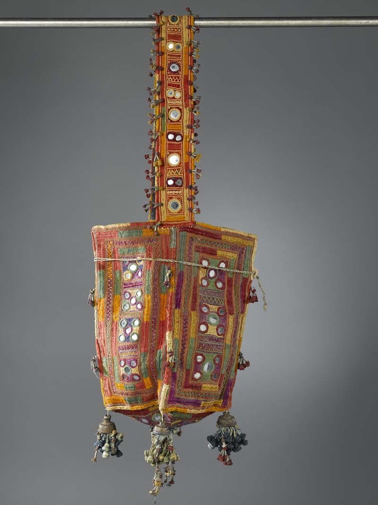 Tas volgeborduurd met katoen en zijde, met spiegeltjes