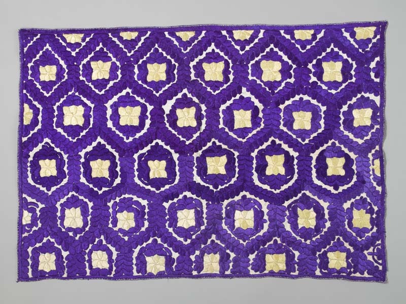 Rechthoekige doek van wit linnen met platsteken geborduurd met bloempatroon