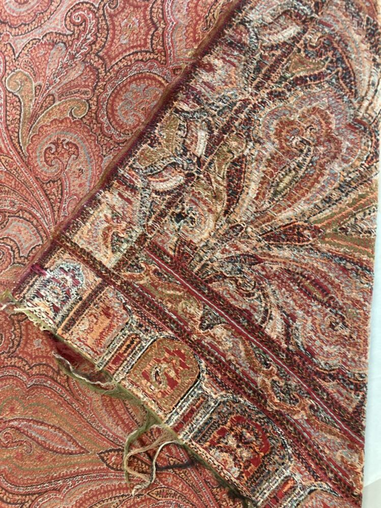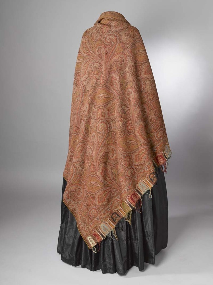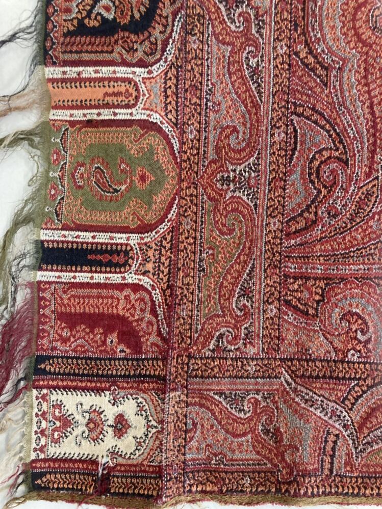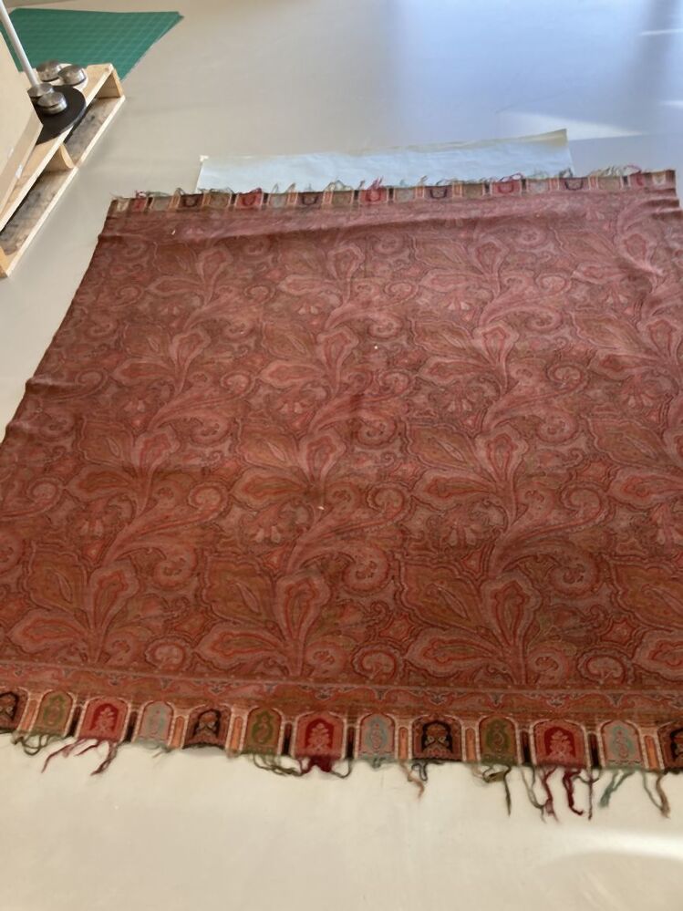 Omslagdoek wol met kasjmierpatroon, bladeren en gekrulde akkolade