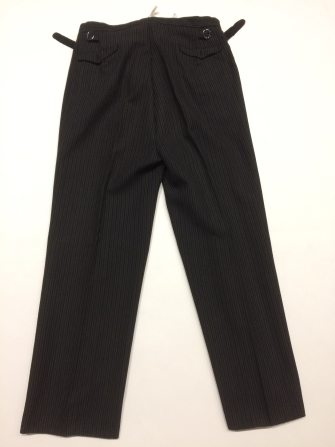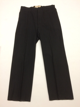 Zwart-grijze gestreepte lange broek van wol met gulpsluiting, onderdeel van trouwpak