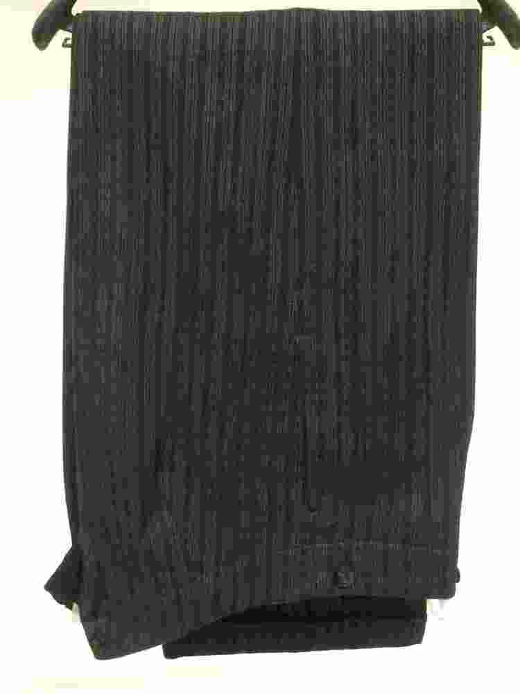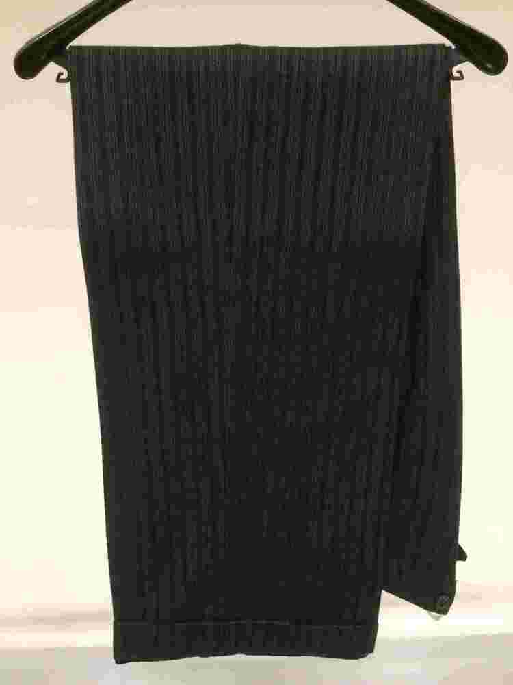 Zwart-grijs gestreepte pantalon van wol met gulpsluiting, onderdeel van trouwkostuum uit 1920