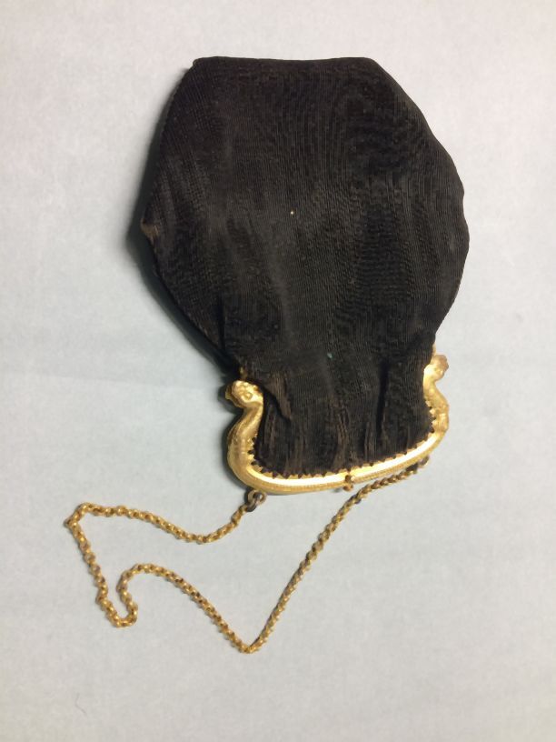 Beugelbeurs met gouden beugel waaraan zwart ripszijden beursje