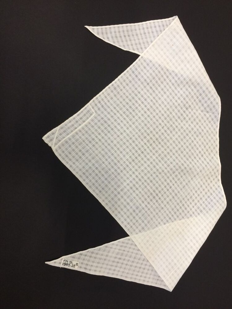 1) hals- of hoofddoek die met een tip (uiteinde) op de rug wordt vastgespeld. https://data.cultureelerfgoed.nl/term/id/cht/00c8692f-af9f-490f-b4ec-ec045b417f30