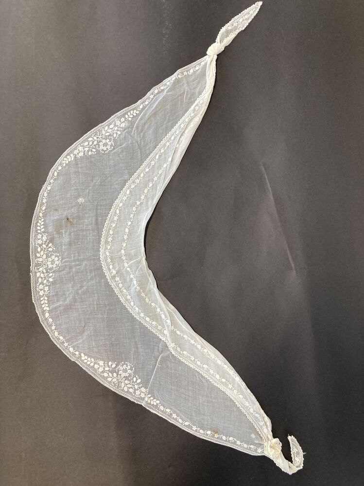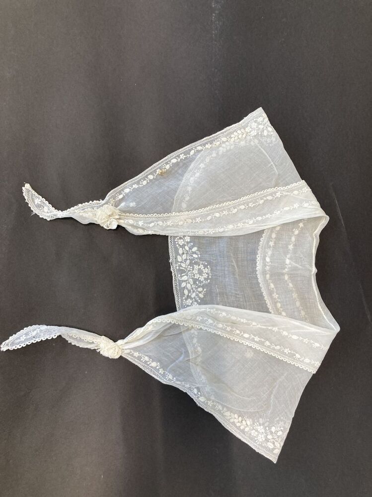 Fichu-kraag van wit neteldoek met halskraagje met geborduurde rans