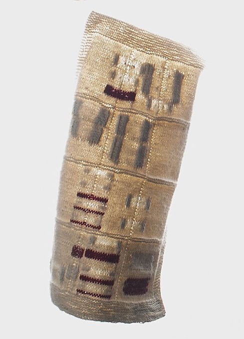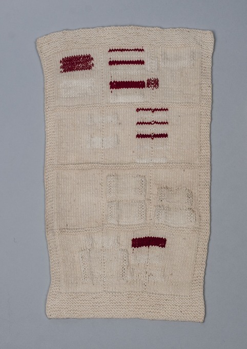 Maasbreilap van wit katoen en rood, viermaal drie blokken, onderdeel van groep van drie