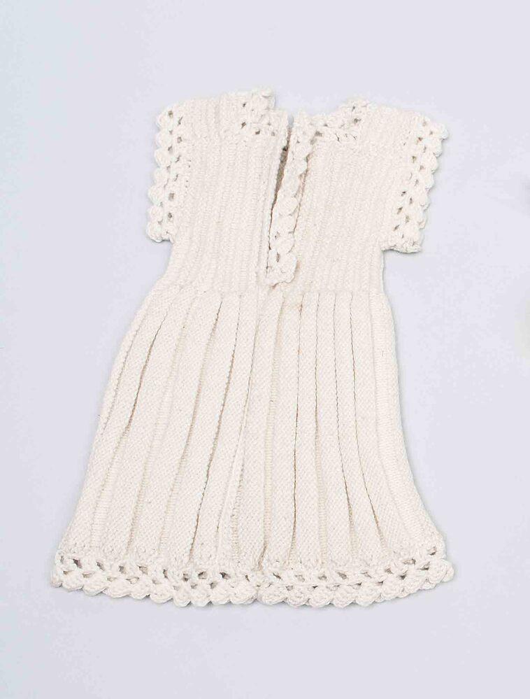 Onderjurk, overdwars gebreid van wit katoen, onderdeel van groep van twee