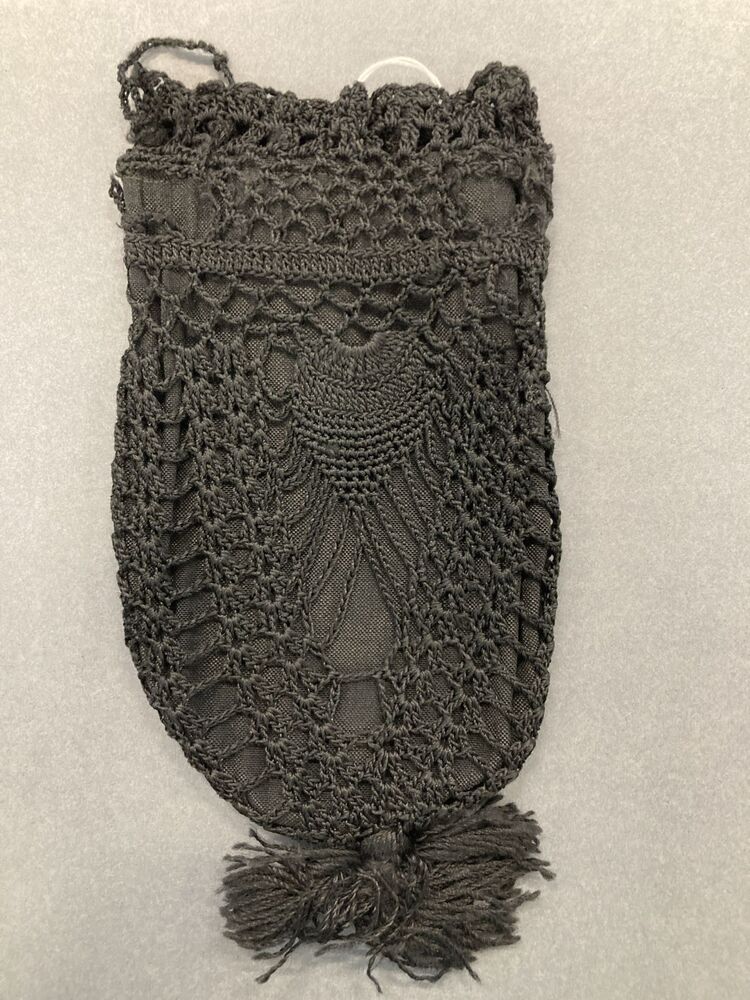 Zak of reticule, haakwerk i ananaspatroon van zwarte kunstzijde