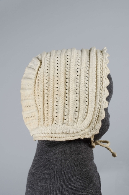 Muts gebreid van wit katoen met rechthoekige bol