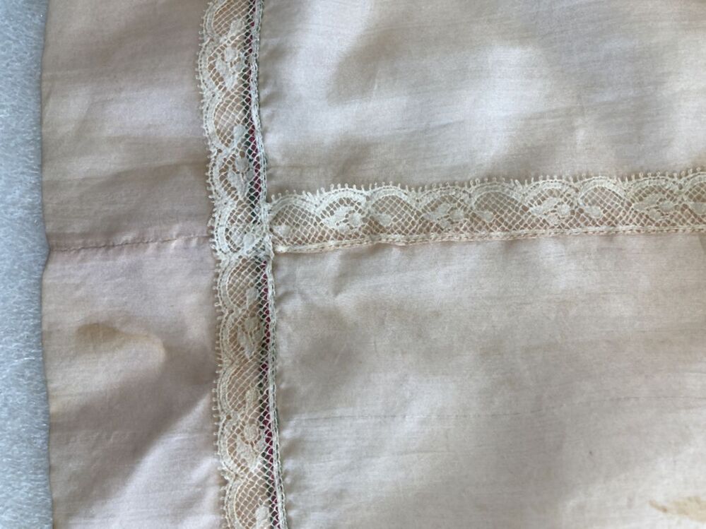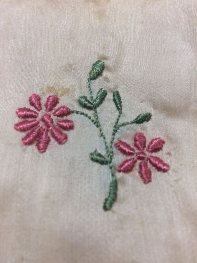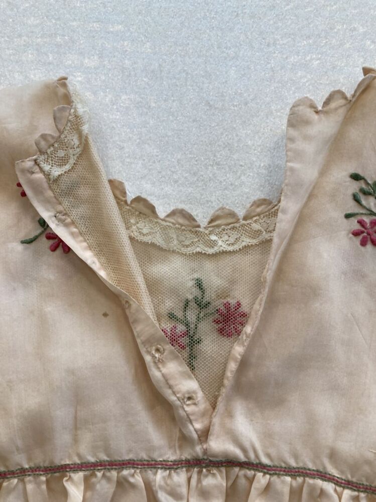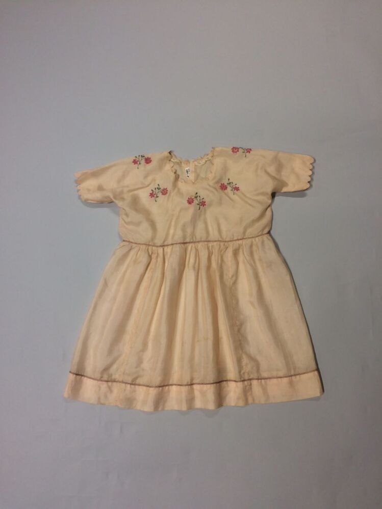 Kinderjurkje van zalmrose pongézijde met borduurwerk