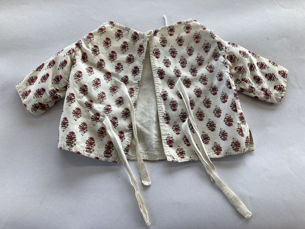 Bedrukt katoenen babyjakje, met gearceerde boeketjes op witte grond