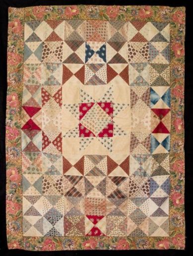 Bedeldeken van bedrukt katoen, bestaande uit schuingekwartileerde vierkanten