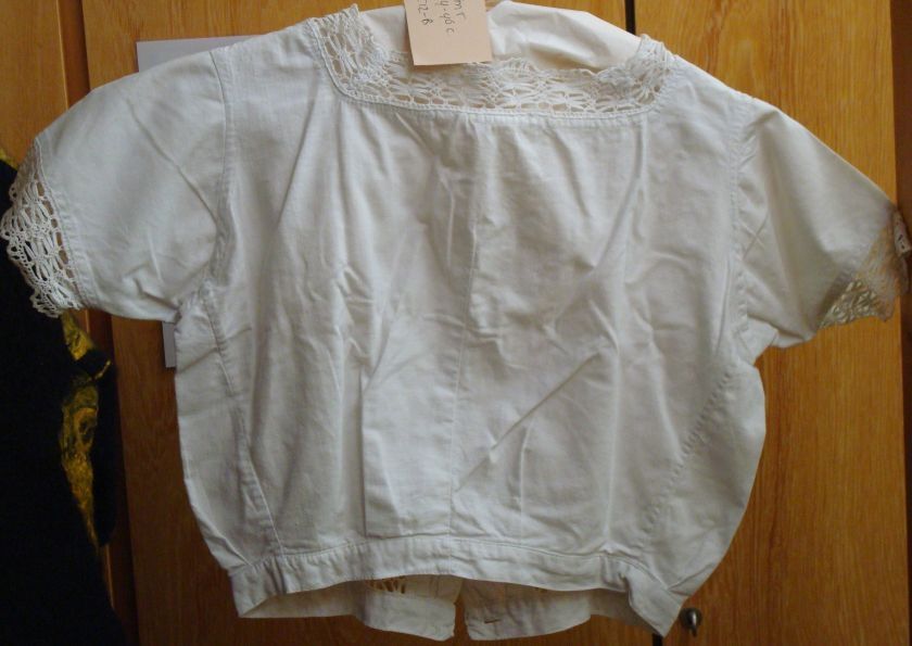 Onderblouse van vrij grof wit katoen, met grof machinaal kloskant