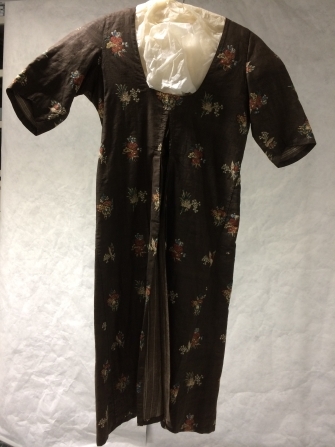 Bedrukt katoenen vrouwenjak, met motief van boeketjes op zwarte grond