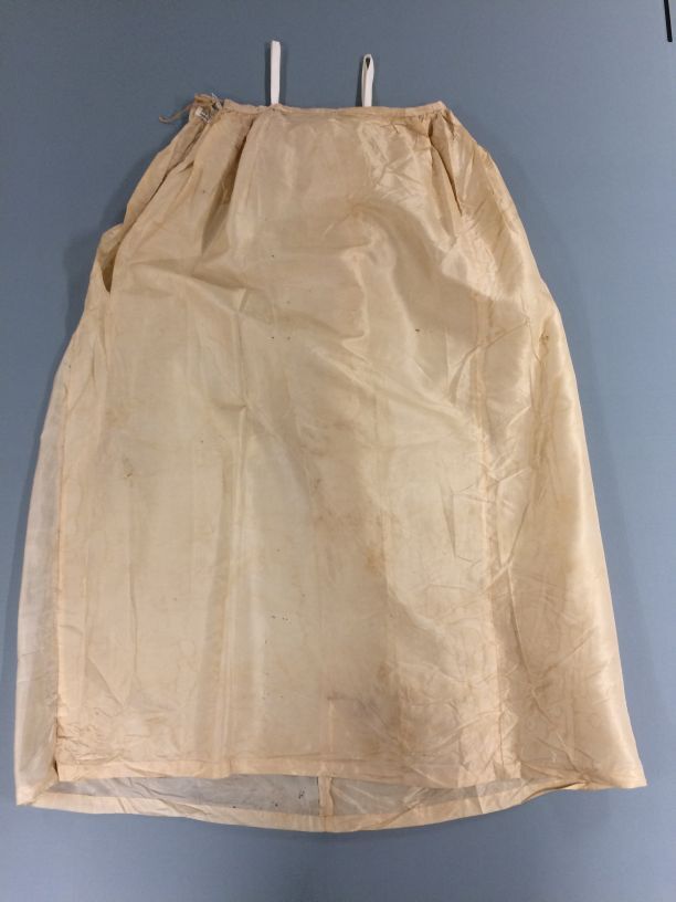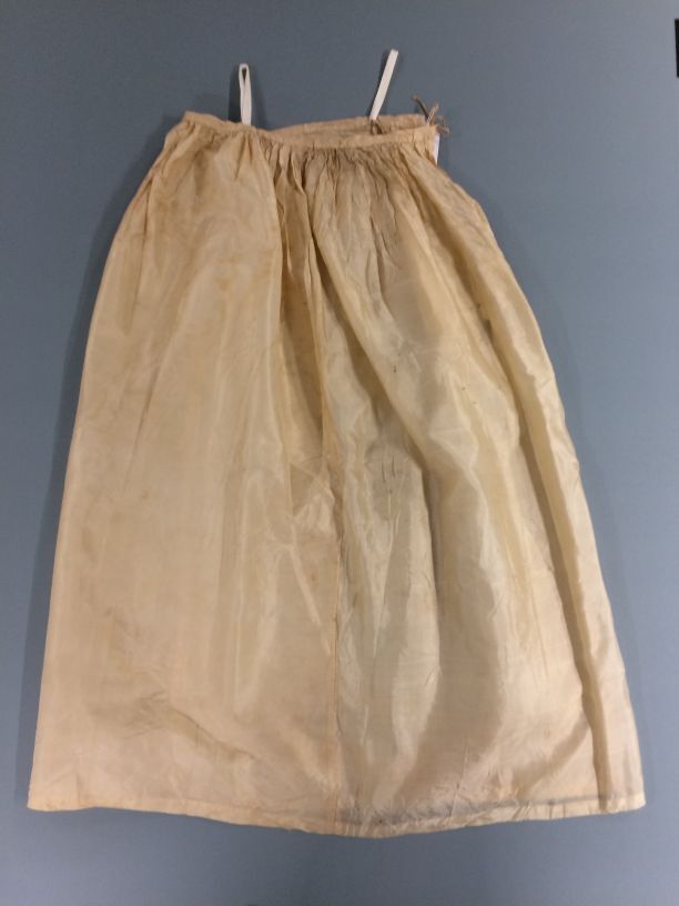 Rok, kind, van crèmekleurige zijde, gerimpeld aan tailleband, 1 split bij taille