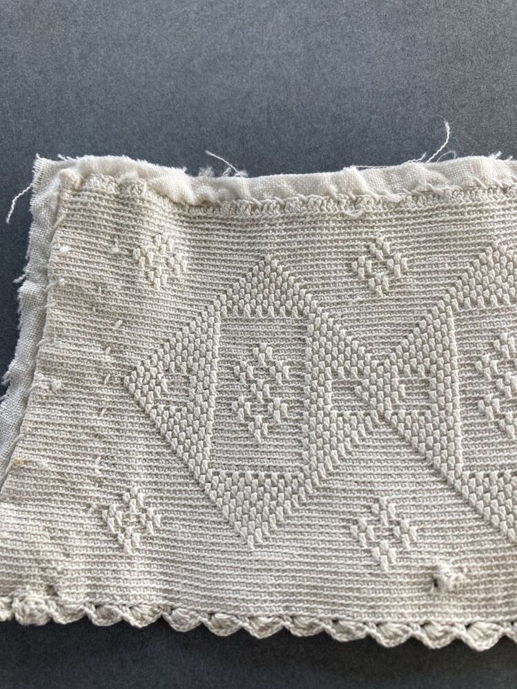 Tipmutsstrook, gehaakt van dunne katoen in reliëfstokjes, met ruiten,