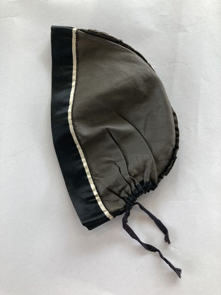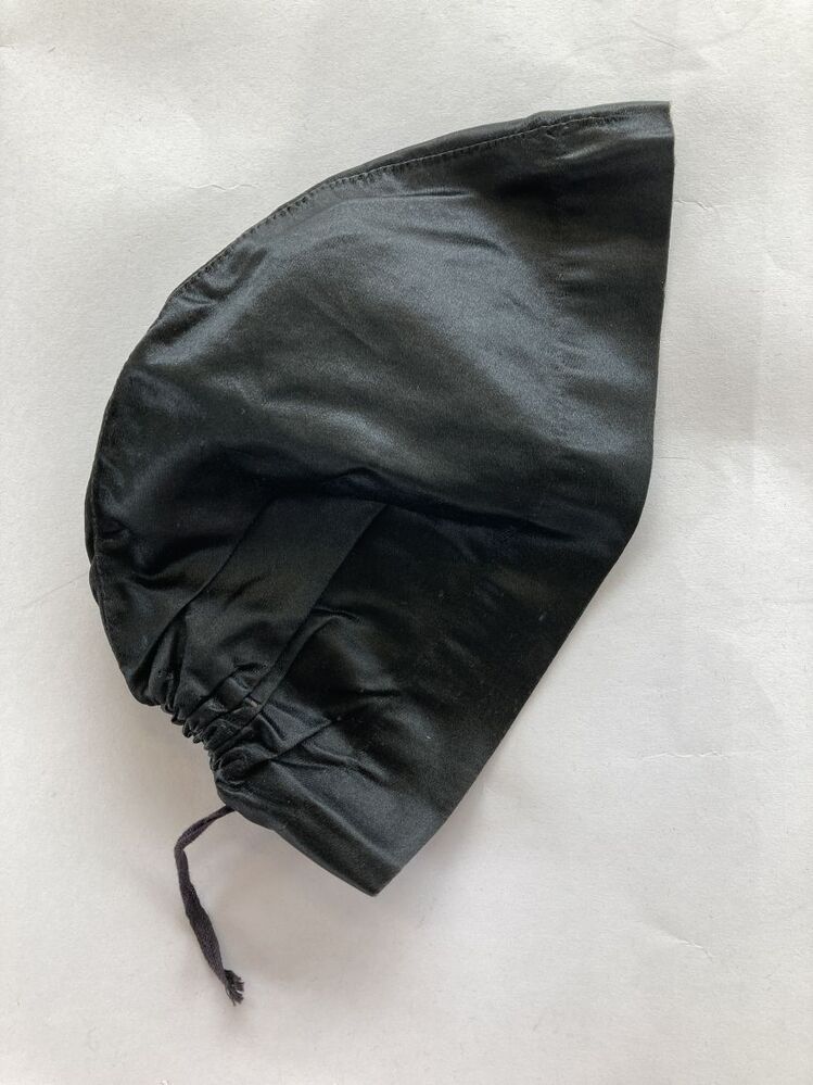 Ondermuts van zwarte zijden satijn, gedragen bij smal oorijzer