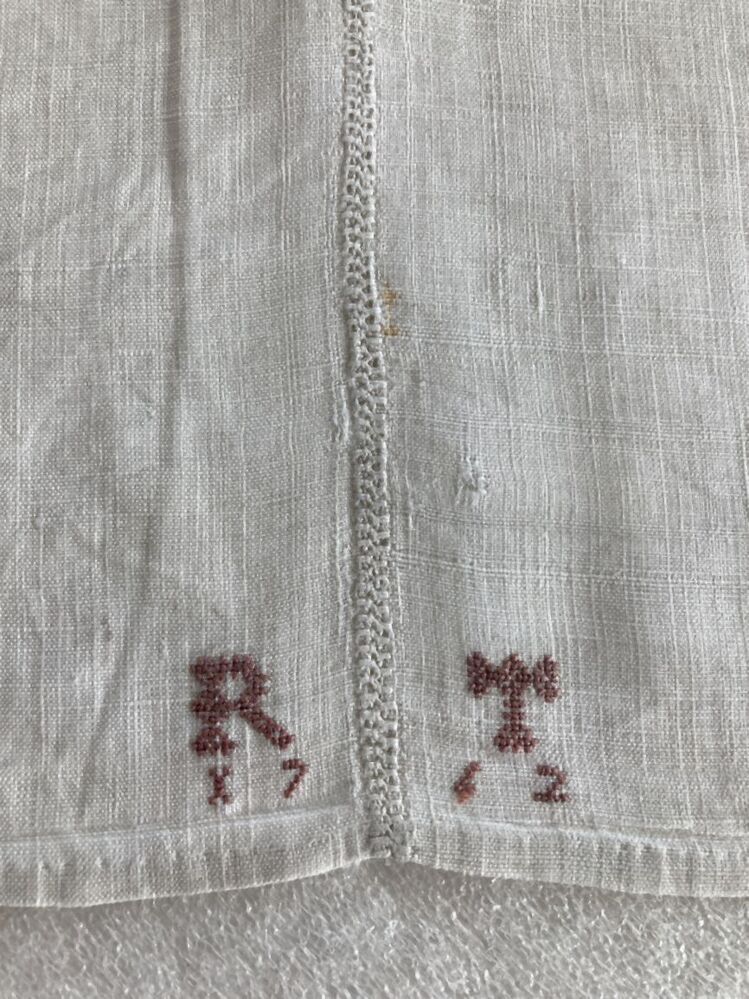 Wit linnen laken met oudroze initialen borduursel RT 1762