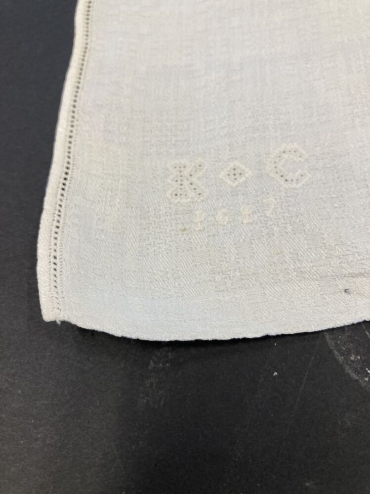Servet van wit linnen damast in pellenpatroon