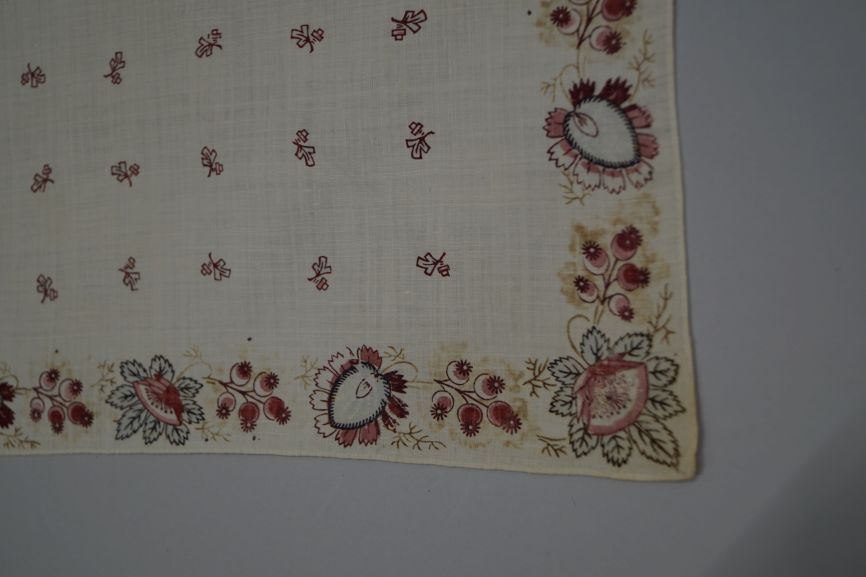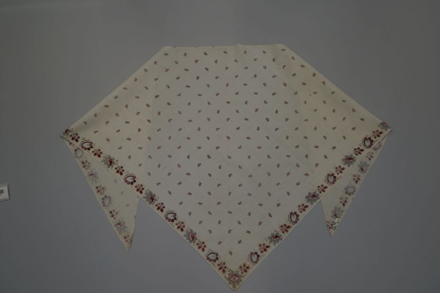 Driekantige katoenen doek bedrukt met kleine exotische bloem en bladvorm
