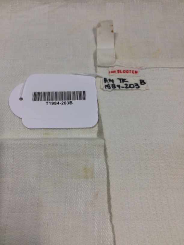 Droogdoek van wit linnen met pellenpatroon van vierkanten
