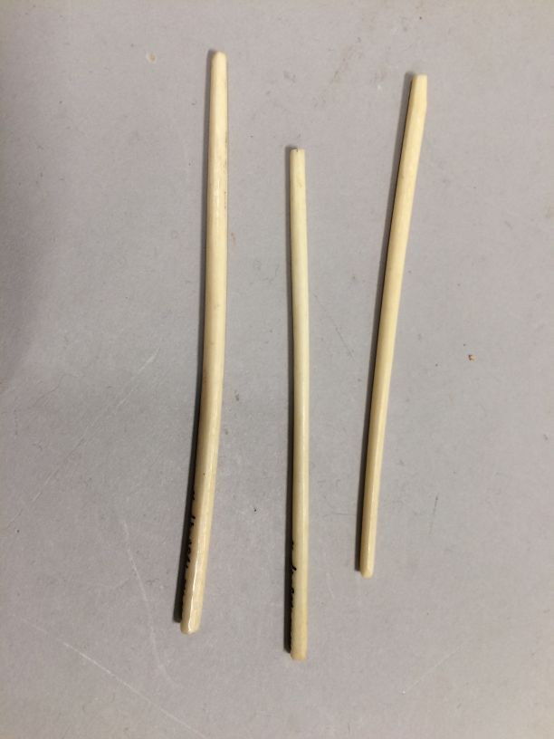 Stokje, onderdeel van inhoud naaidoos van Chinees zwart met goud lakwerk, groep van drieëndertig objecten