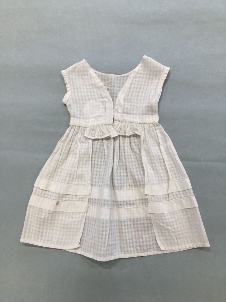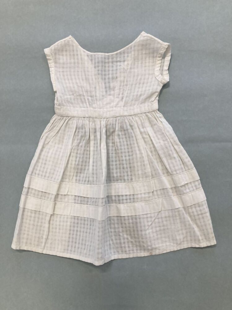 Schortje van dun wit katoen met ingeweven ruitje met aangerimpelde rok