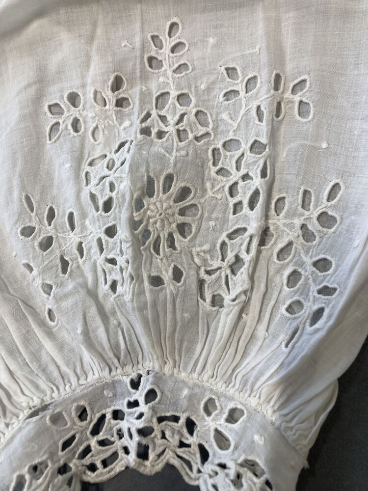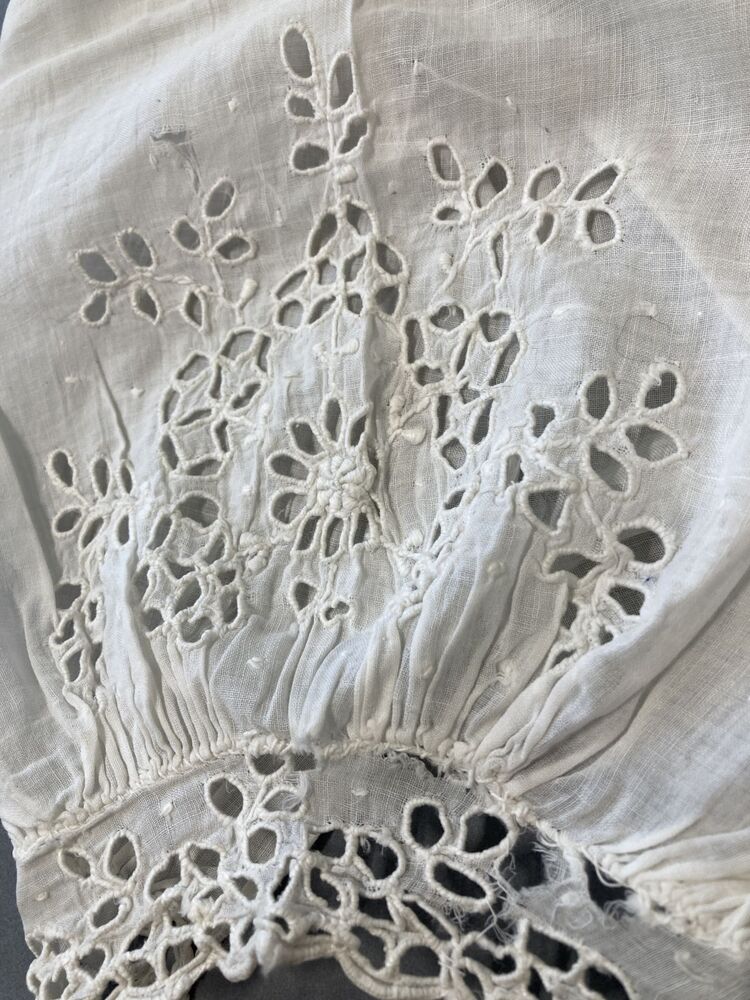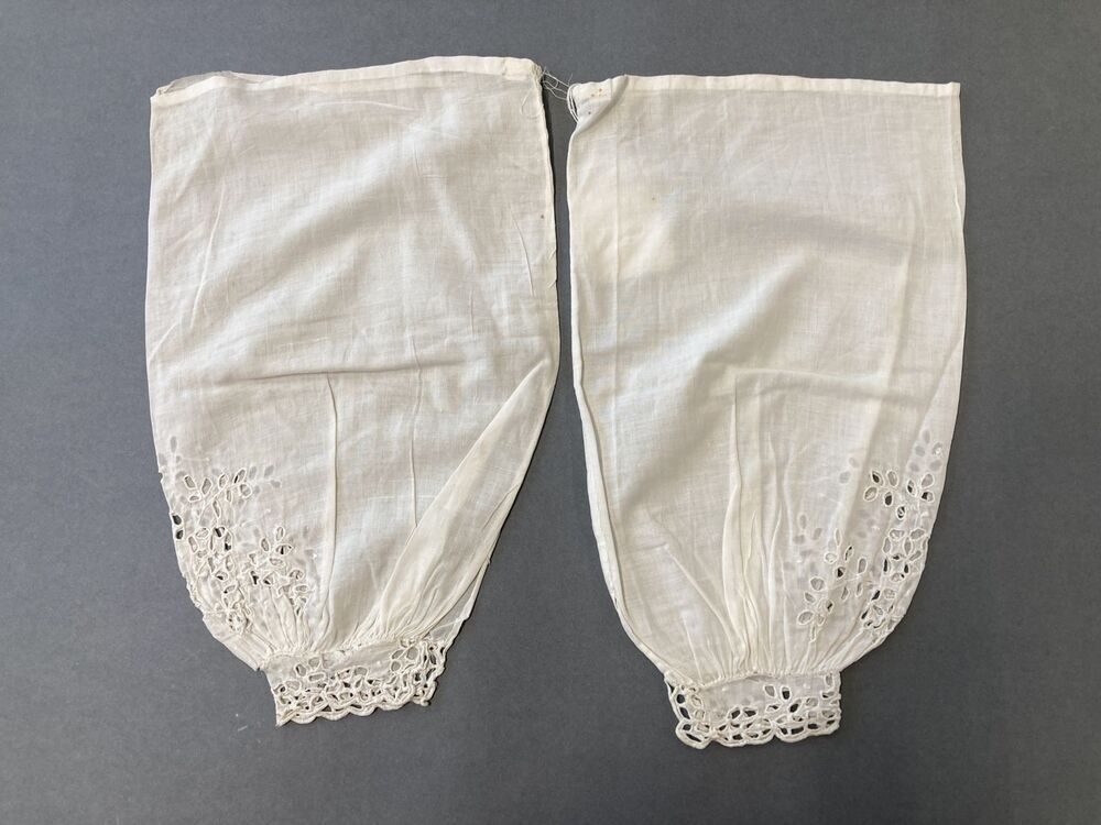 Paar ondermouwen van wit batist met manchetten met engels borduurwerk