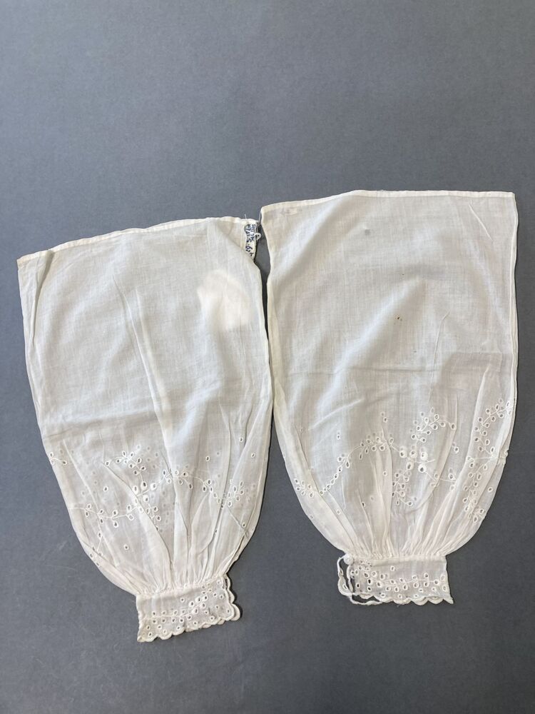 Paar mouwen van wit batist aan manchet met geschulpte kant