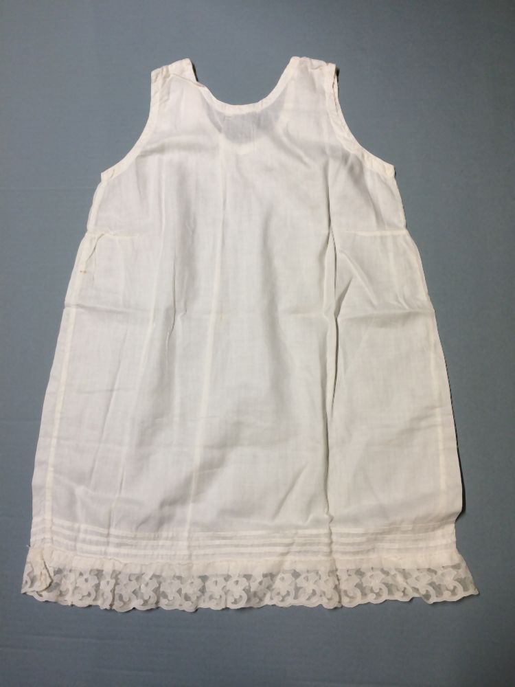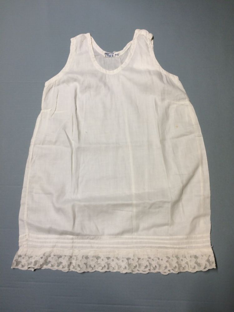 Onderjurkje, wit katoen afgezet met applikatie kant