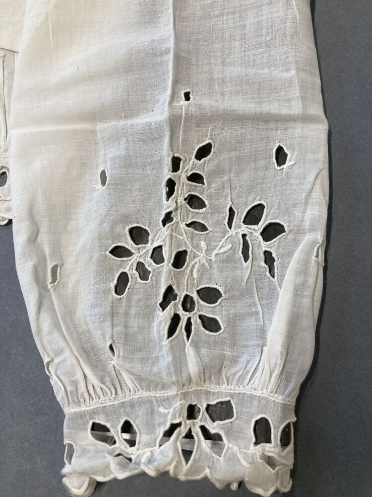 Paar ajour geborduurde ondermouwen van wit batist met manchetten