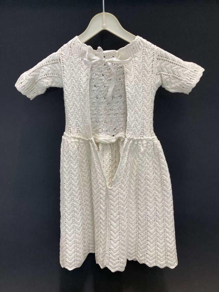 Jurkje of onderjurkje kind, ajour gebreid van wit katoen, zigzag zoom, ajour zigzag patroon