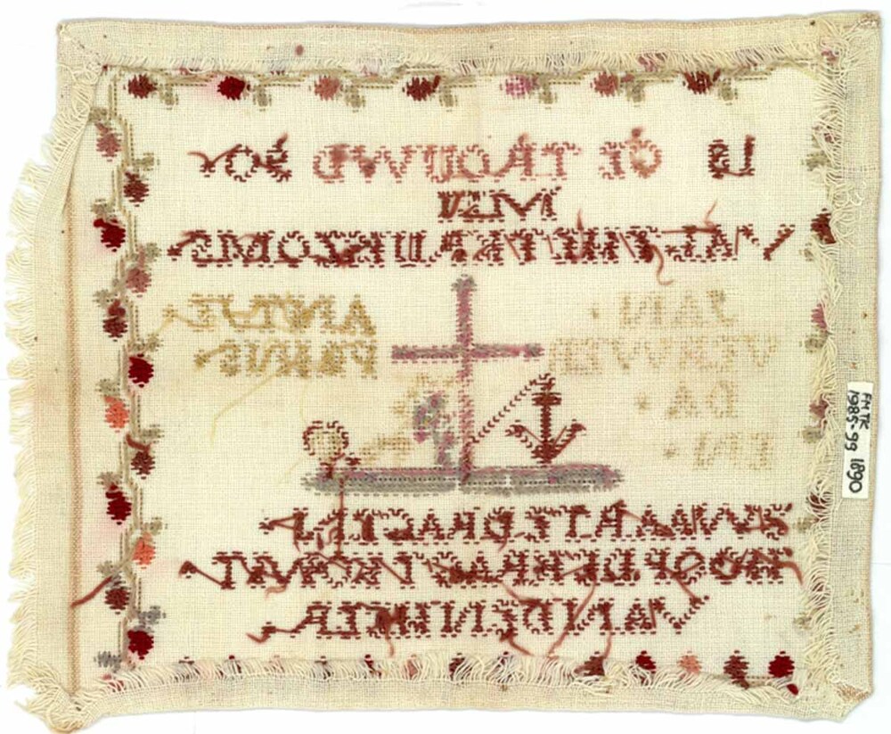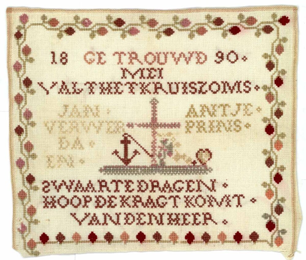 Borduurstuk ter gelegenheid van het huwelijk van Antje Prins en Jan Ferwerda 1890.