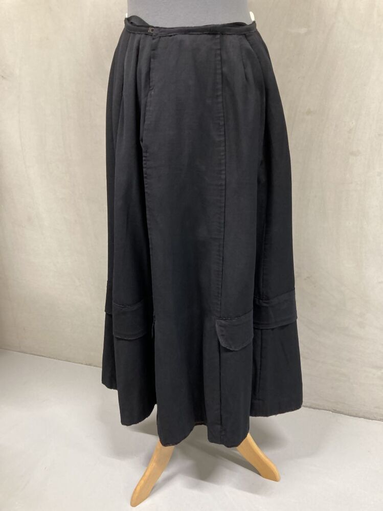 Rok van kostuum van zwart wollen crèpe, gerend, uit 6 panden, met versierende naden