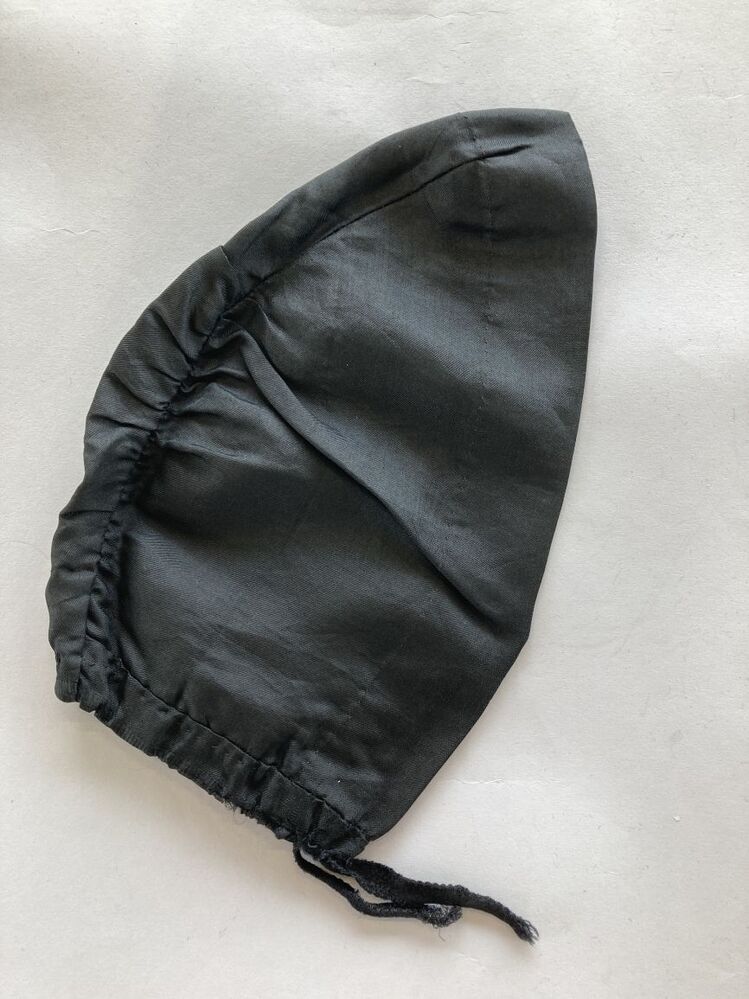 Zwarte ondermuts van rayon keperweefsel,gedragen bij oorijzer