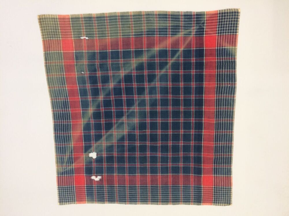 Hindelooper sondook met blauwe grond, met rode witte ruiten