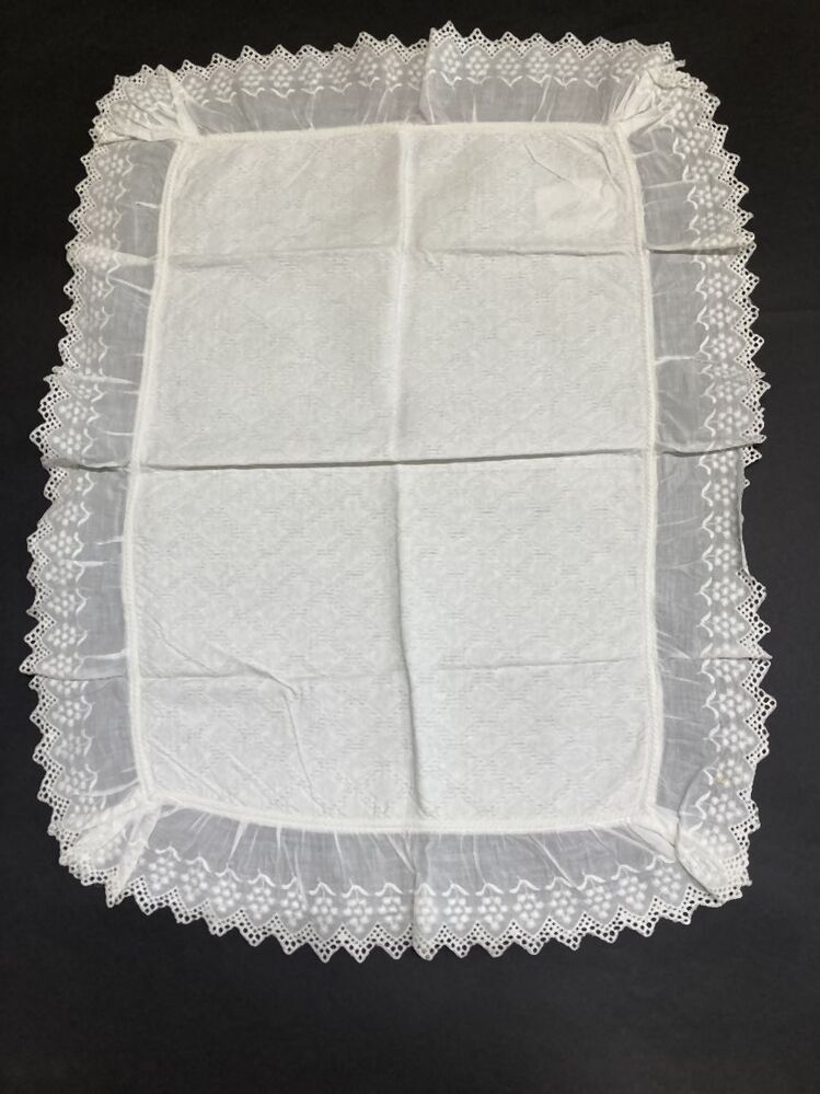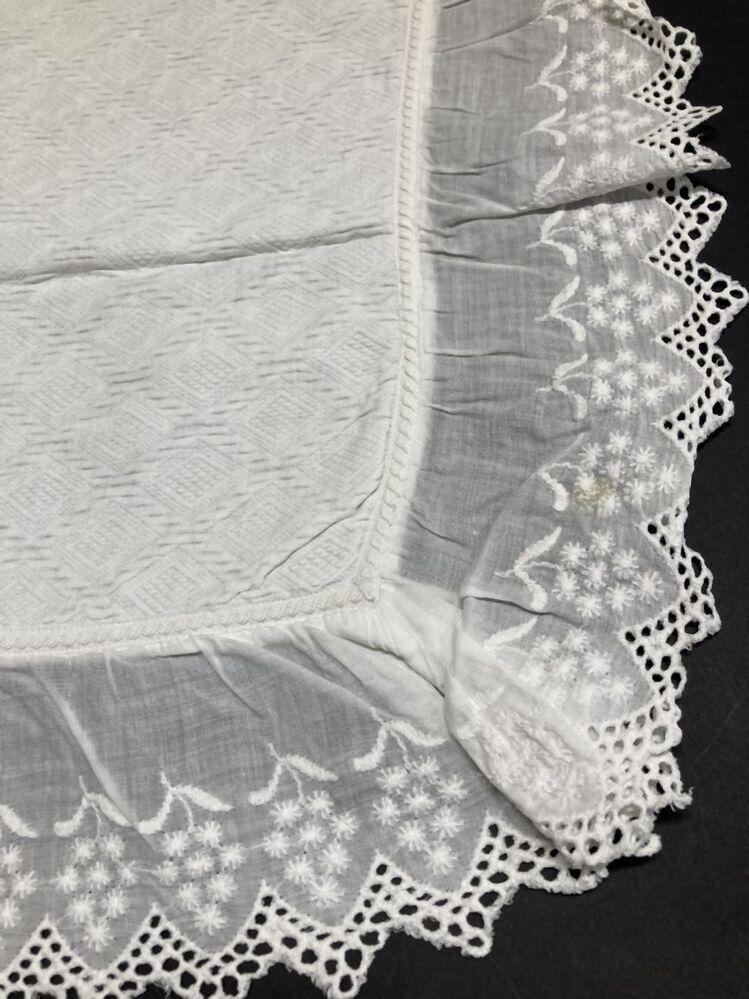 Wiegendekje, wit piqué, afgezet met machinaal broderie
