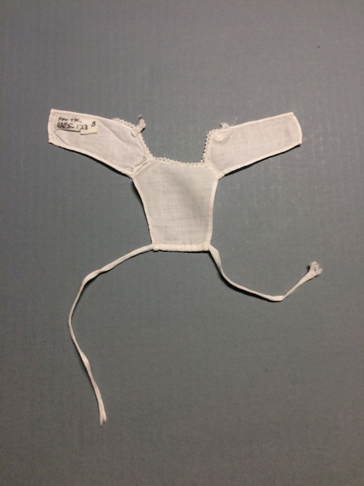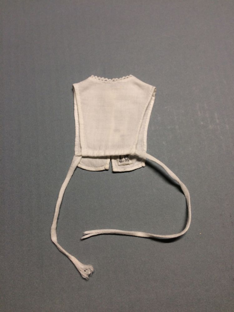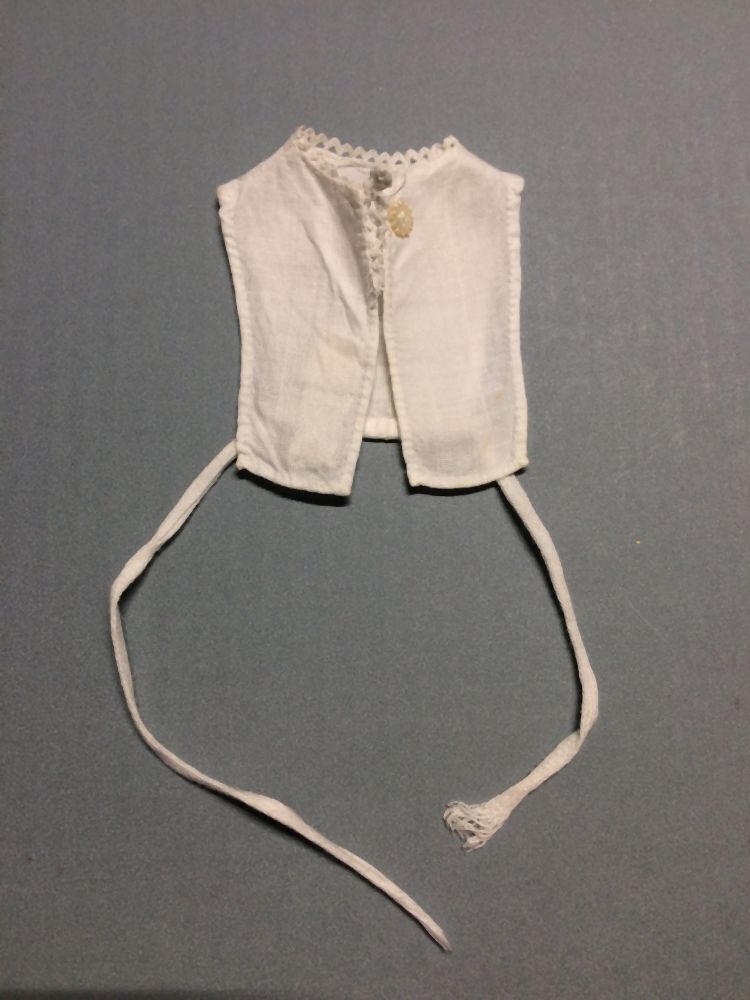Chemisette van fijn wit linnen met srikband en zigzagbandje langs hals, onderdeel van groep van twee