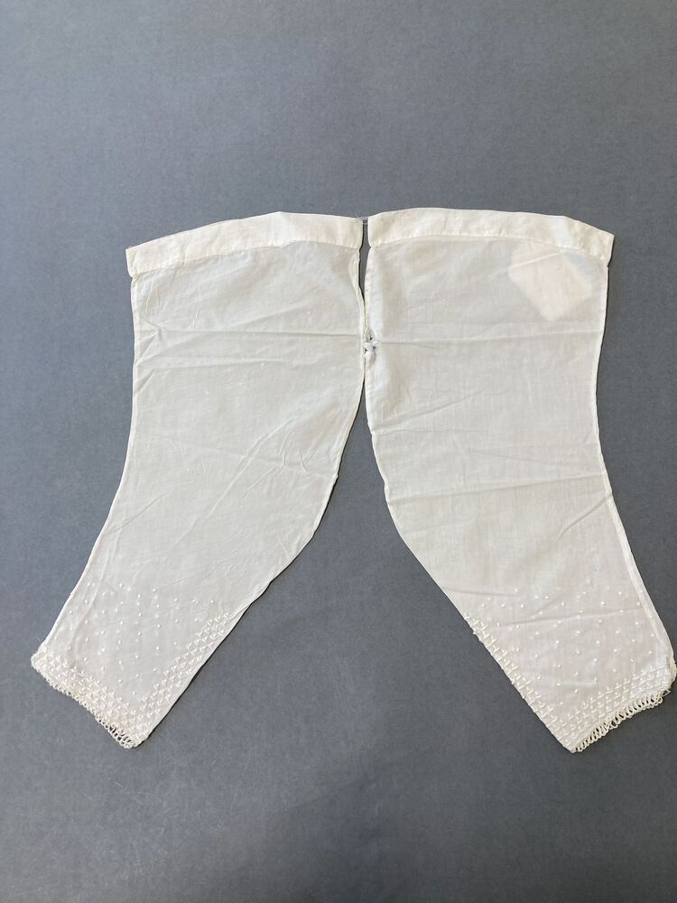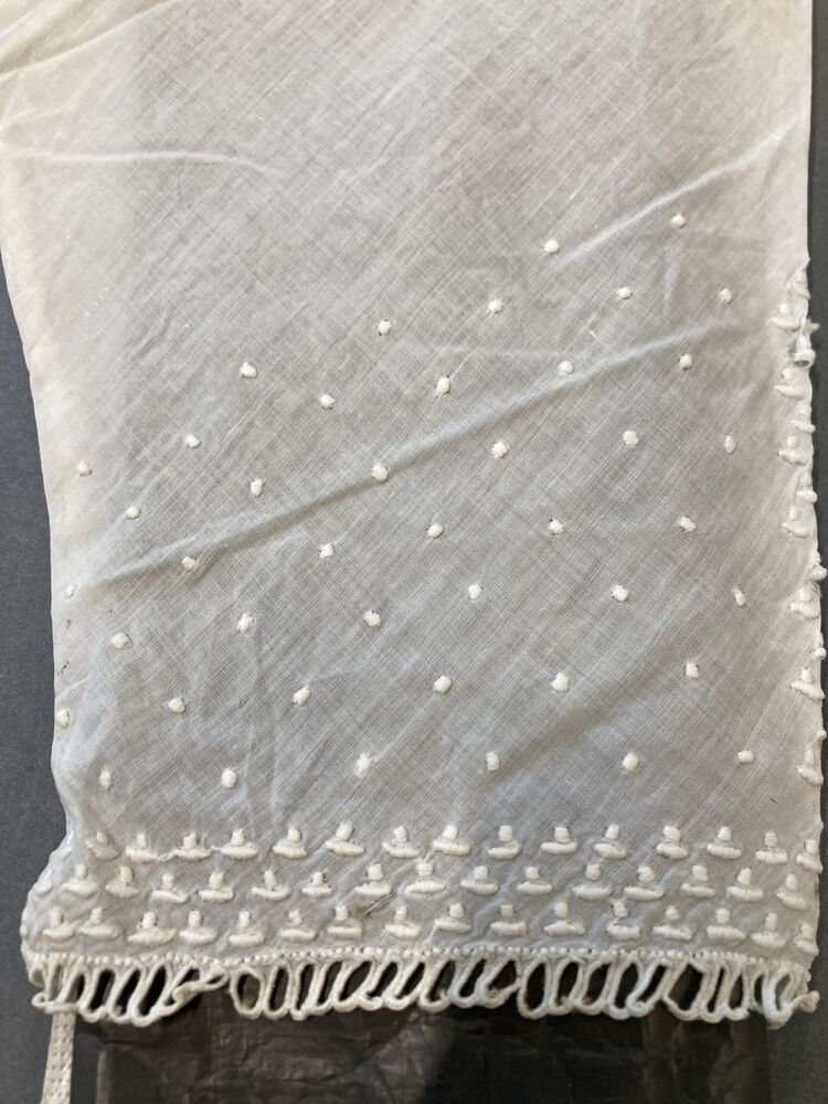 Paar lange ondermouwen van wit batist met nopjes in Frans borduurwerk