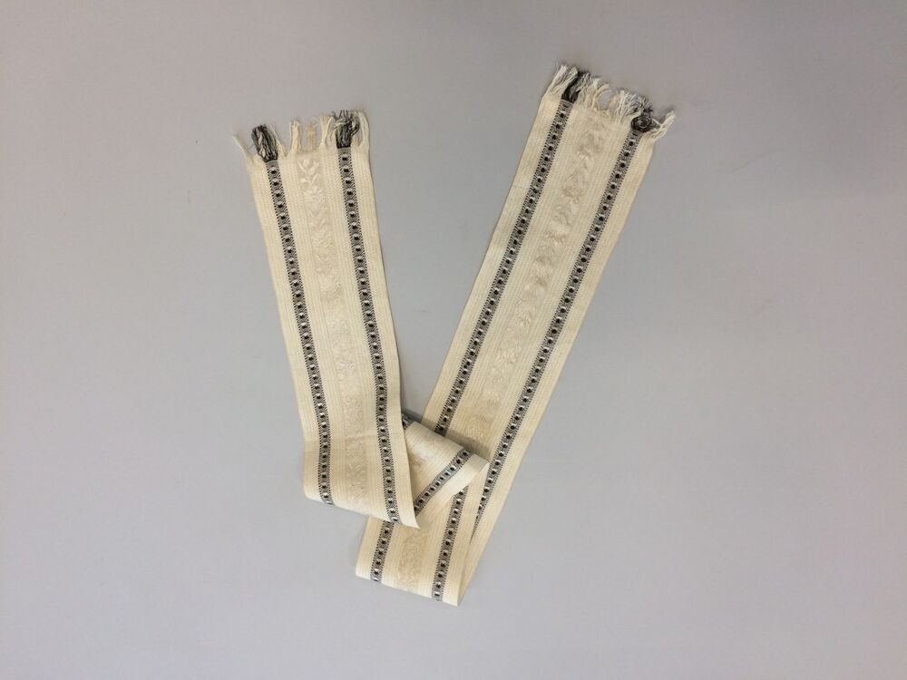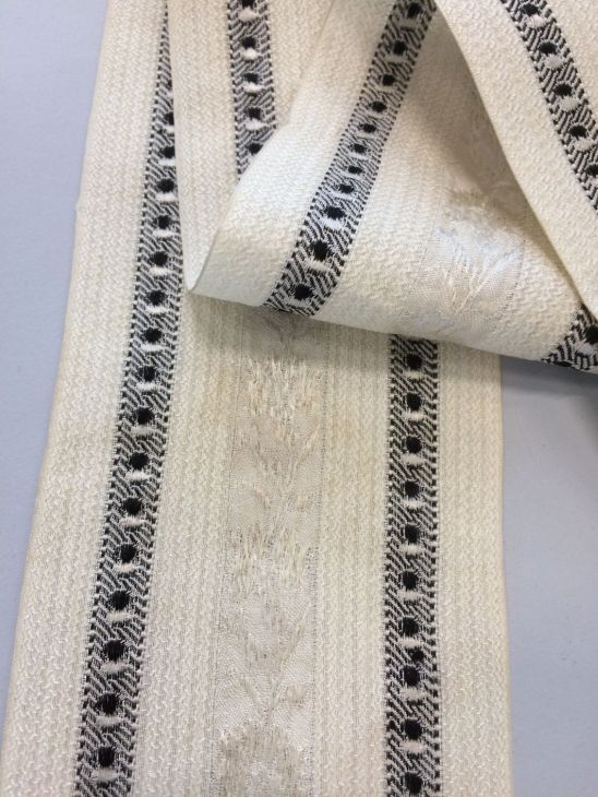 Sjaaltje van crèmekleurige zijde met twee zwarte gestipte banen