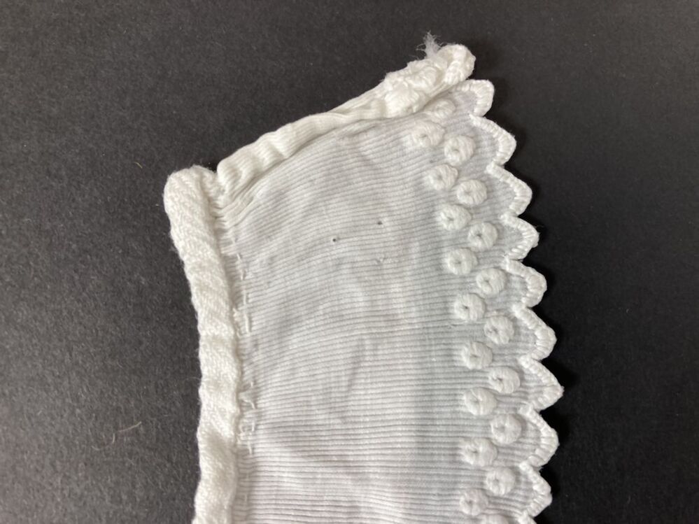 Wit katoenen kraag met machinaal geborduurd randje, onderdeel van groep van vier