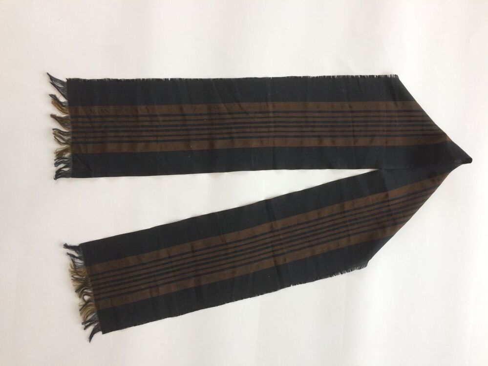 Sjaal gemaakt van reep zwarte luster met ingeweven bruine strepen
